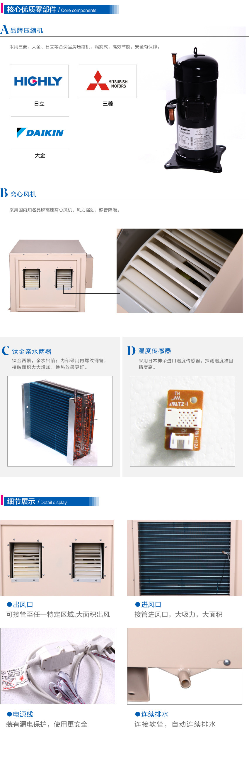 2.采用國際品牌壓縮機(jī),性能穩(wěn)定、除濕效果持久、強(qiáng)勁。